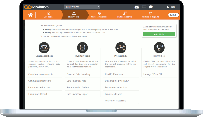 Create your privacy management program in a few simple steps and let our smart inbox guide you with our innovative data-protection-as-a-service (DPaaS). Be operationally compliant and demonstrate accountability in a matter of weeks.