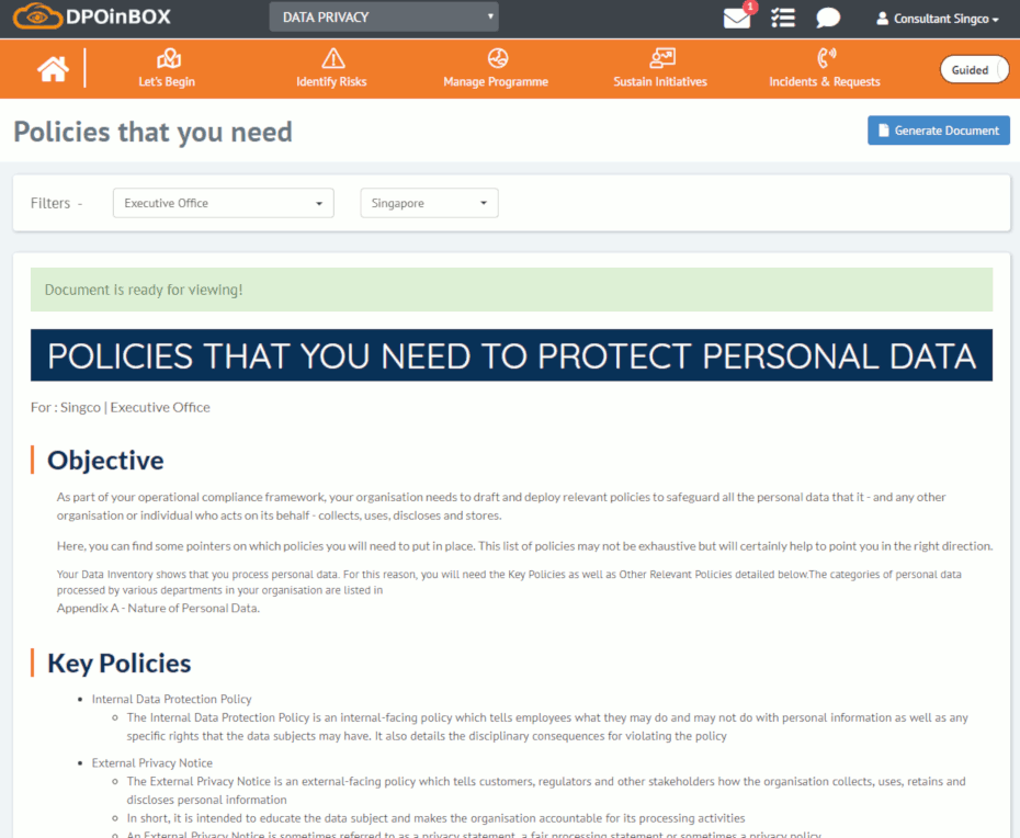 Address identified gaps and risks. Manage and implement your personal data protection or privacy management program.